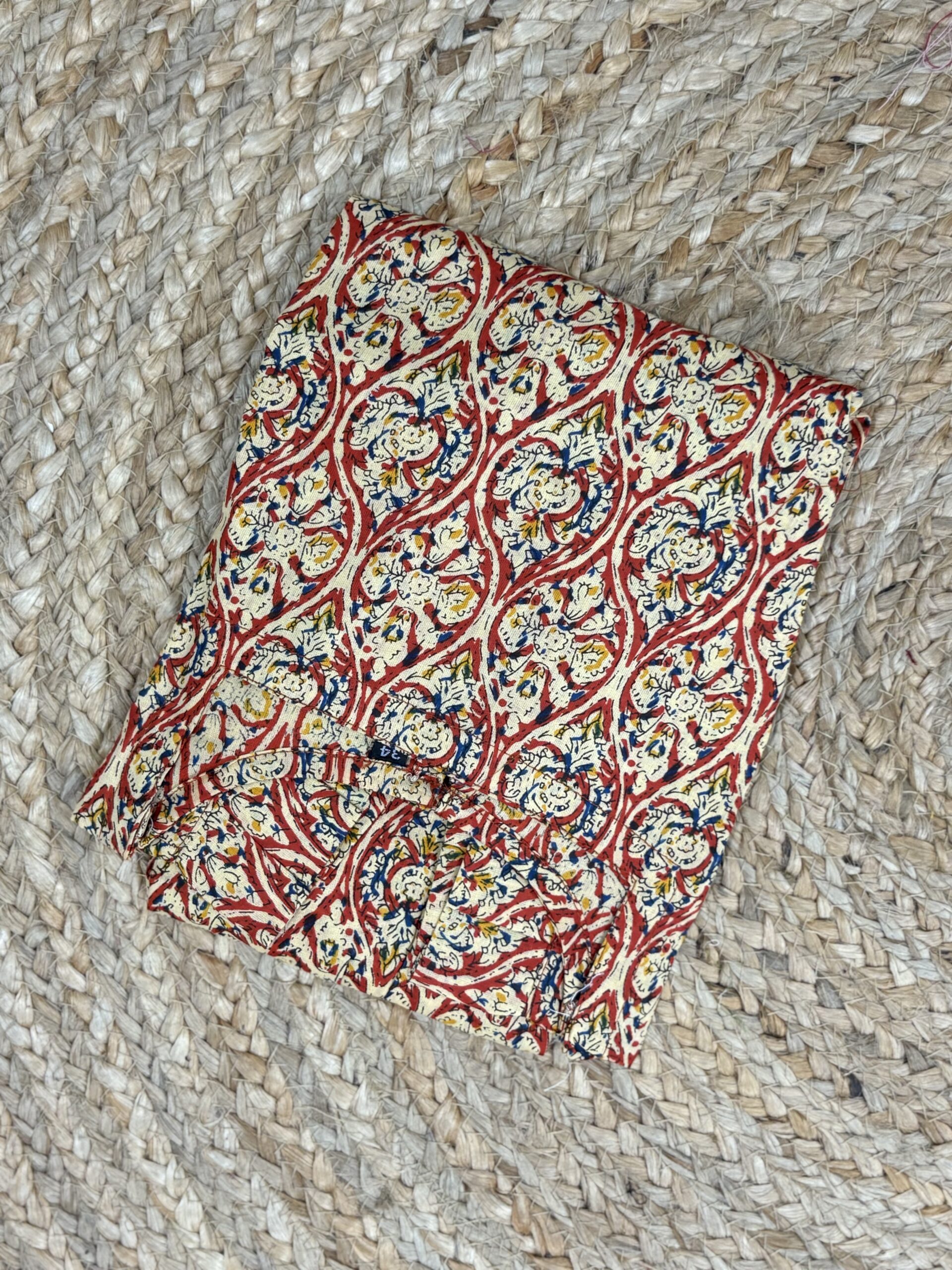 The soft Kalamkari Frock Thread with a floral-inspired feel adds a touch of brightness, making it ideal for warm weather or when you just want to keep things light and easy. It’s also low-maintenance—washable by hand or machine with up to 5% natural shrinkage after the first wash.